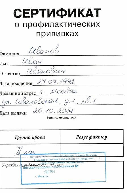 Купить прививочный сертификат в Москве для ребенка
