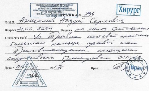 Справки от хирурга требуются взрослым и детям и каждый раз в бланк вносят следующую информацию: