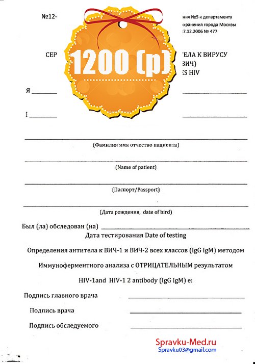 Купить справки об отсутствии ВИЧ отрицательный 1200 рублей