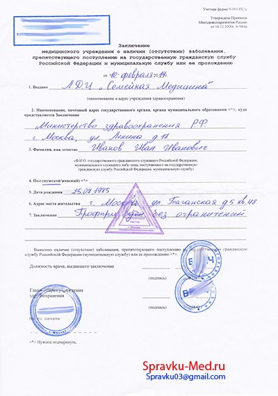 Наши специалисты проконсультируют вас по всем интересующим вопросам, и максимум на следующий день вы получите документ о том, что вы пригодны для работы в государственном учреждении.