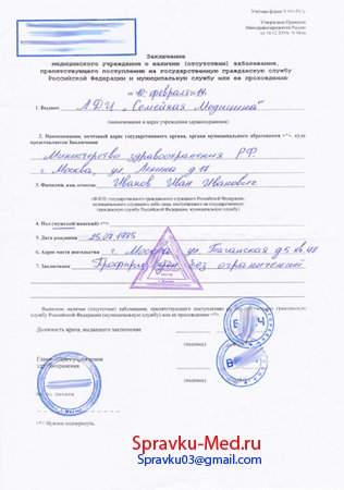 Купить справку 001 ГС/У для трудоустройства в Москве