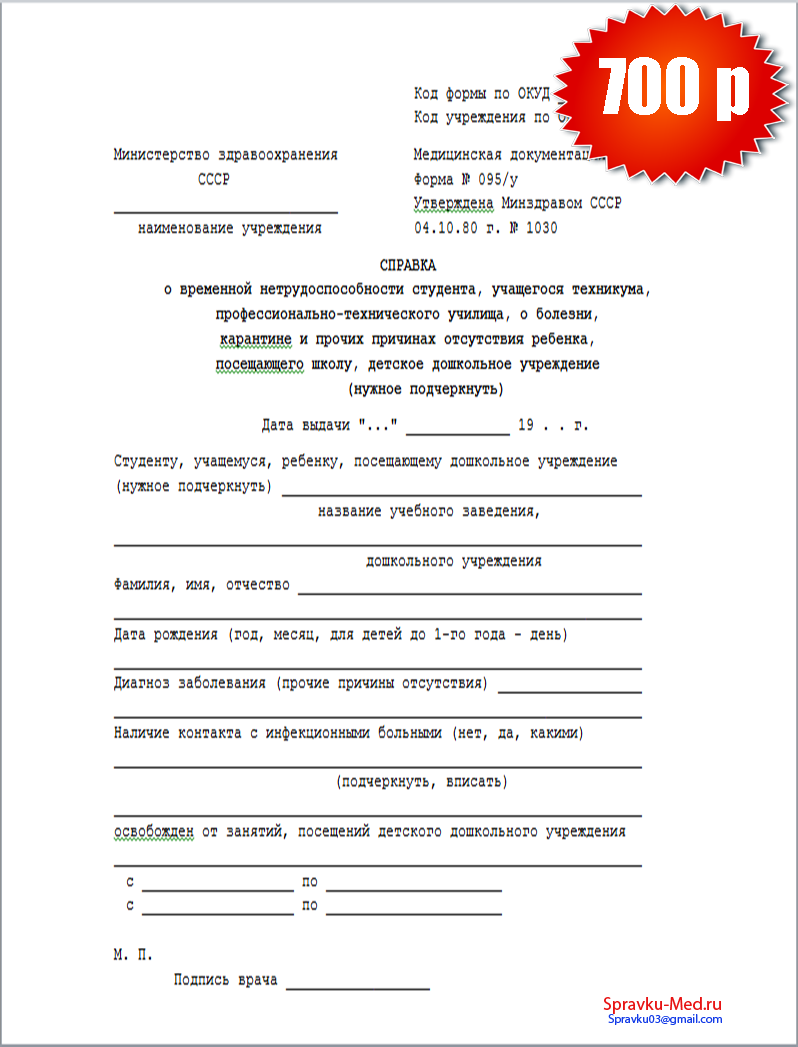 Справка формы 095у : получение