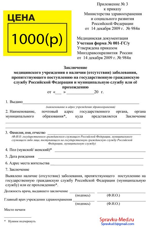 Как получить справку для госслужбы 001 ГС У