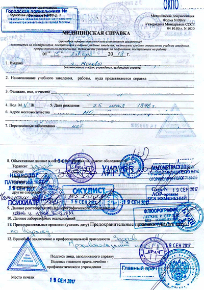 Подлинность бланка помимо врачебных печатей и подписей, должен лично заверить главный врач. Также на бланке 086 у ставят штамп медицинского заведения. Для того, чтобы вовремя предоставить справку нужно запастись времени, так как процесс обещает быть долгим.