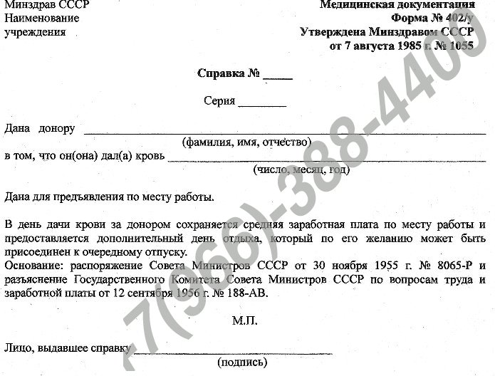 Купить справку 402/у в Москве (справка доноро) без прохождения врачей