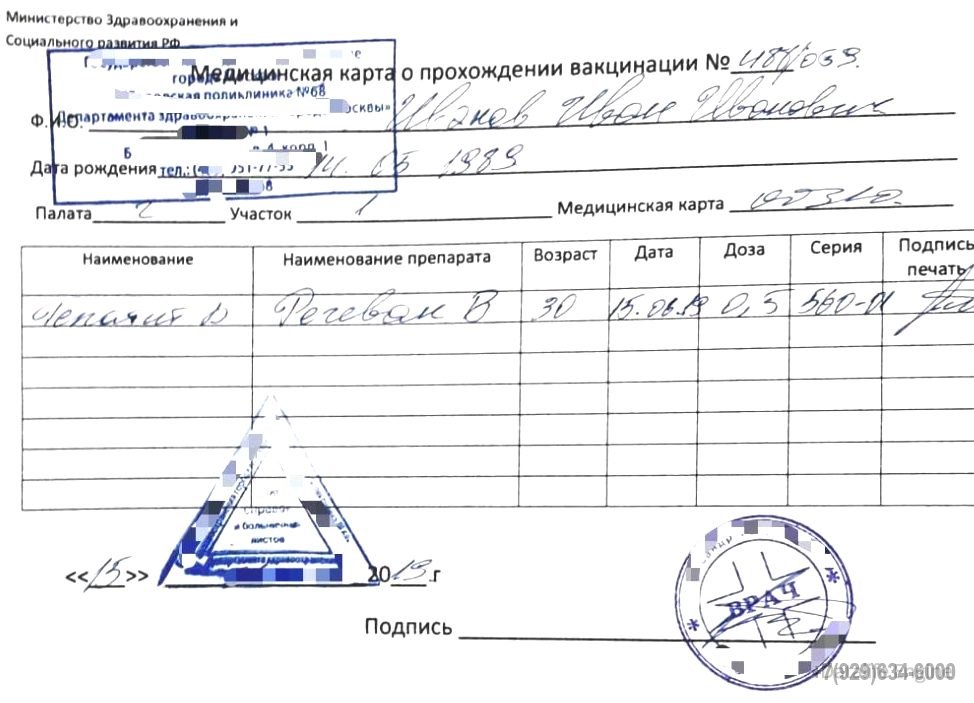 Такие условия не предложат даже в частном медицинском центре. Кроме того, что они потребуют обязательного вашего присутствия, так и цену возьмут необоснованно высокую. Звоните прямо сейчас, чтобы купить справку о прививке от гепатита B в Москве с бесплатной доставкой.