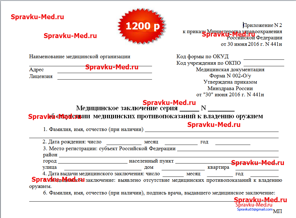 Для покупки оружия понадобится оформить уйму документов, в том числе и справку 002 О/У. Для этого придется посетить психоневрологический и наркологический диспансеры, офтальмолога и терапевта. Это все занимает несколько недель. Для упрощения процедуры проще обратиться к нам в Kypi Spravki за помощью в оформлении.