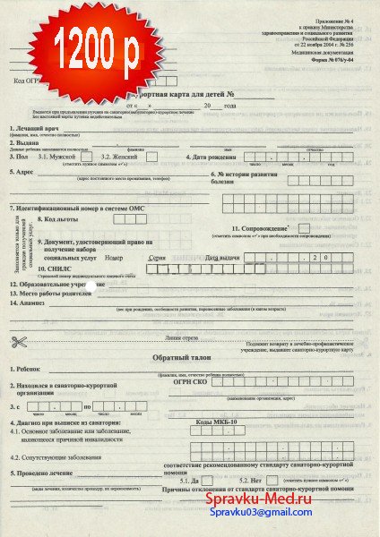 Заказать карту-ребенка в санаторий по форме 076у-04