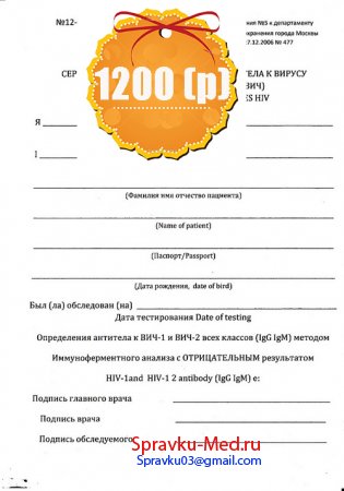 Что же в таонлайн случае можно сделать? Мы предлагаем пойти самым простым и быстрым путем купить справку об отсутствии ВИЧв Москве без прохождения врачей и без сдачи анализа на ВИЧ при помощи нашего сервиса. Здесь вы получите нужную справку или анализ без необходимости выходить из дома и сдавать анализ. С нами вы всегда получите возможность предоставить справку в самые короткие сроки.