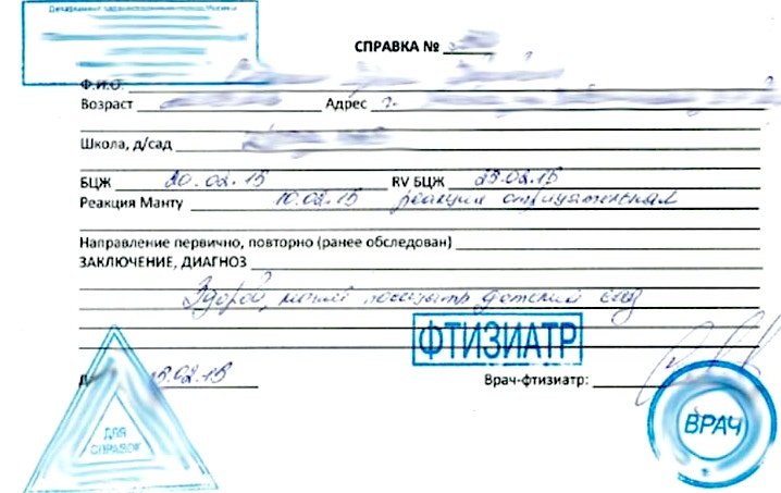 Купить справку Манту ребенку в Москве